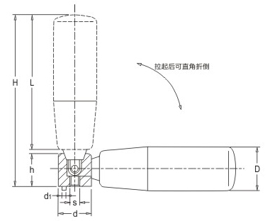 JS.103005 可折手柄 顏色:亮光黑 材質(zhì):酚醛樹脂(膠木)或增強尼龍 用途:適用于各類機械上緊固位置的靈活調(diào)節(jié) 特性:手柄拉出后可90度折疊,提高設(shè)備在運行中的安全性
