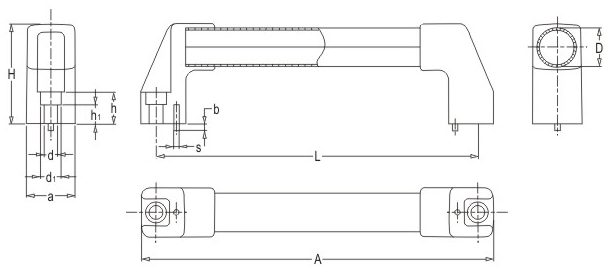 JS.104007 不銹鋼方拉手 顏色:銀色 材質(zhì):不銹鋼管+鋅鋁合金、增強(qiáng)尼龍 用途:適用于各類數(shù)控機(jī)械防護(hù)門 特性:啞光飾面、外形美觀、機(jī)械強(qiáng)度高、堅(jiān)固耐用、標(biāo)準(zhǔn)化使用、安裝簡便