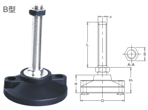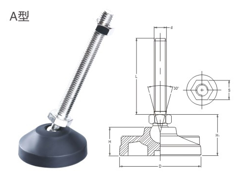 JS.108007 關節(jié)蹄腳 顏色:黑色 材質:增強尼龍、碳鋼 用途:適用于小型設備的水平調整及減震